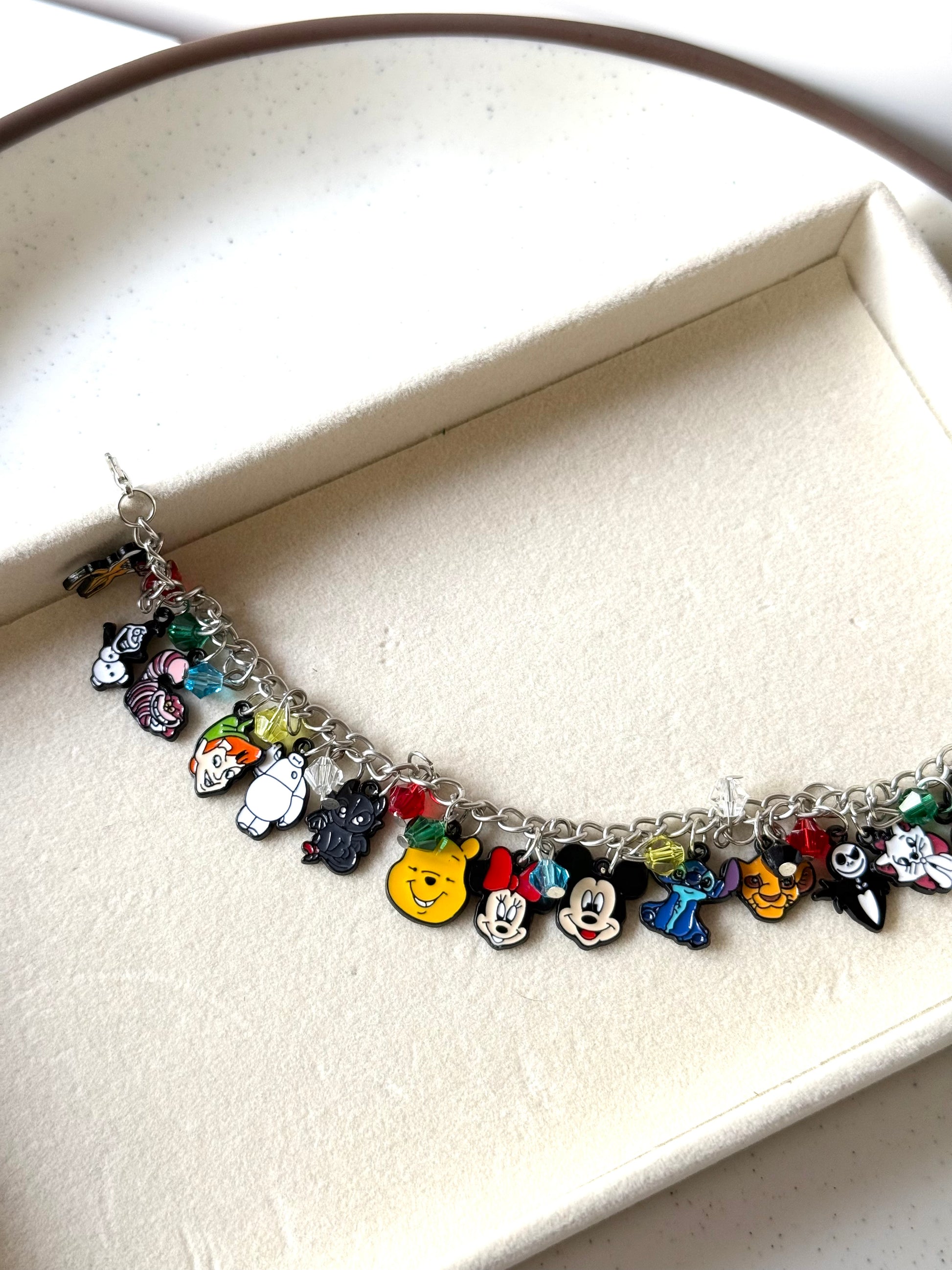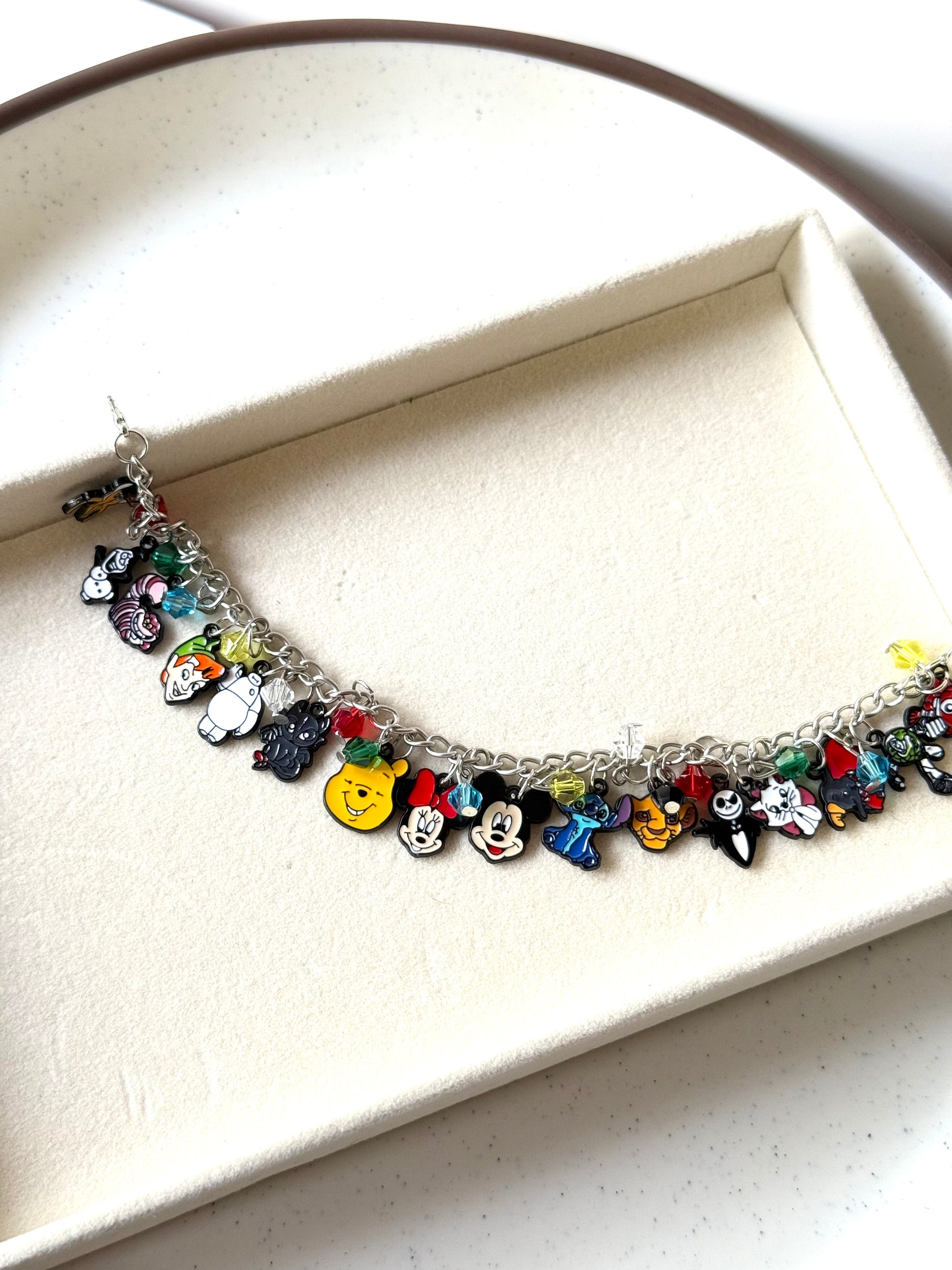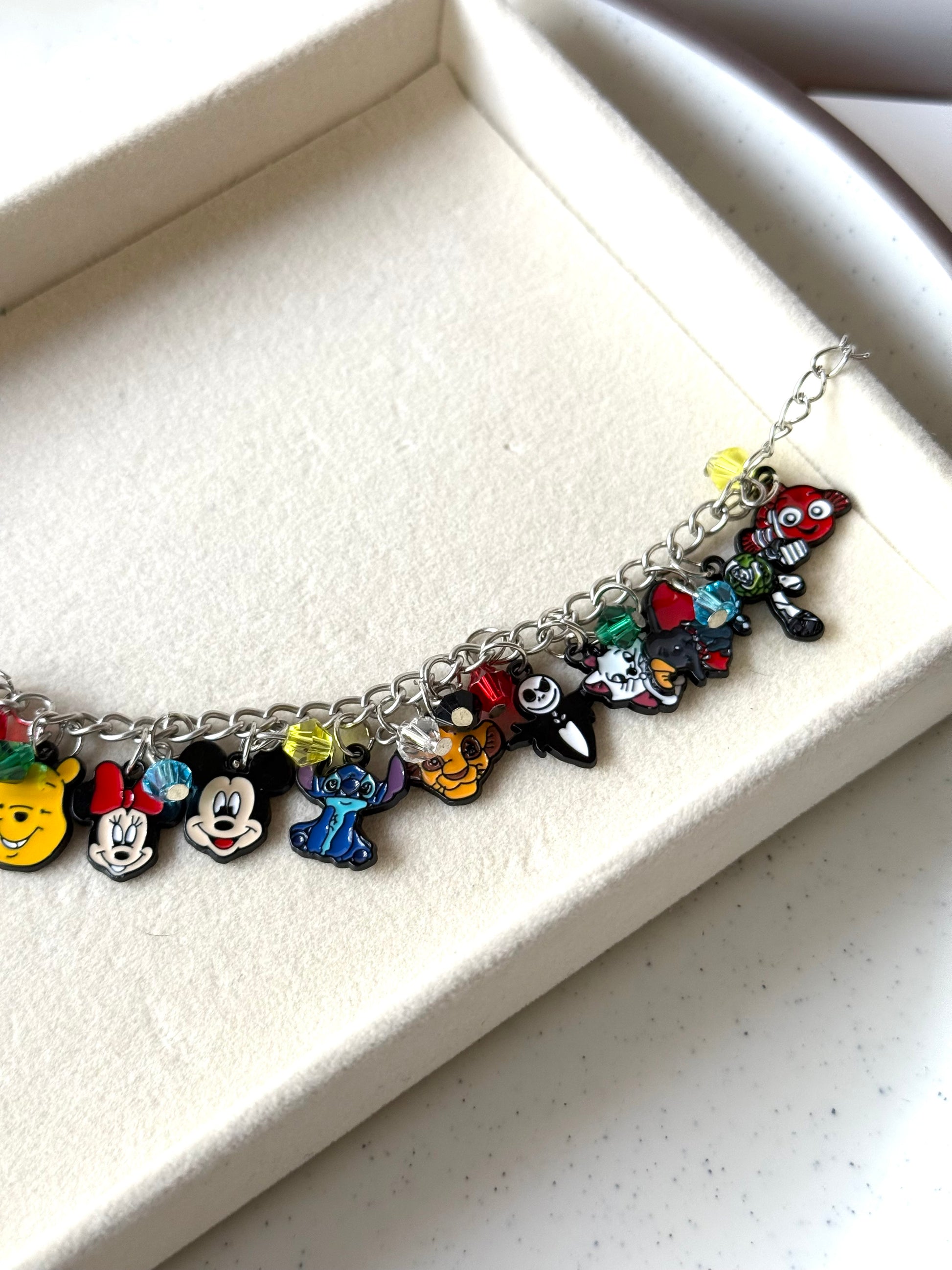 From Winnie the Pooh and Mickey Mouse to Stitch, Jack Skellington, and Simba, this bracelet is a curated gallery of fan favorites. Each charm is meticulously crafted with vibrant colors, making this a true collector’s piece for any animation enthusiast.